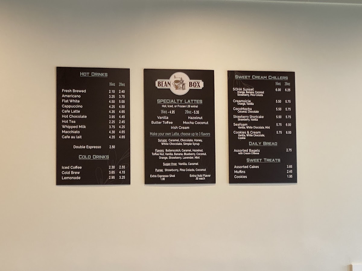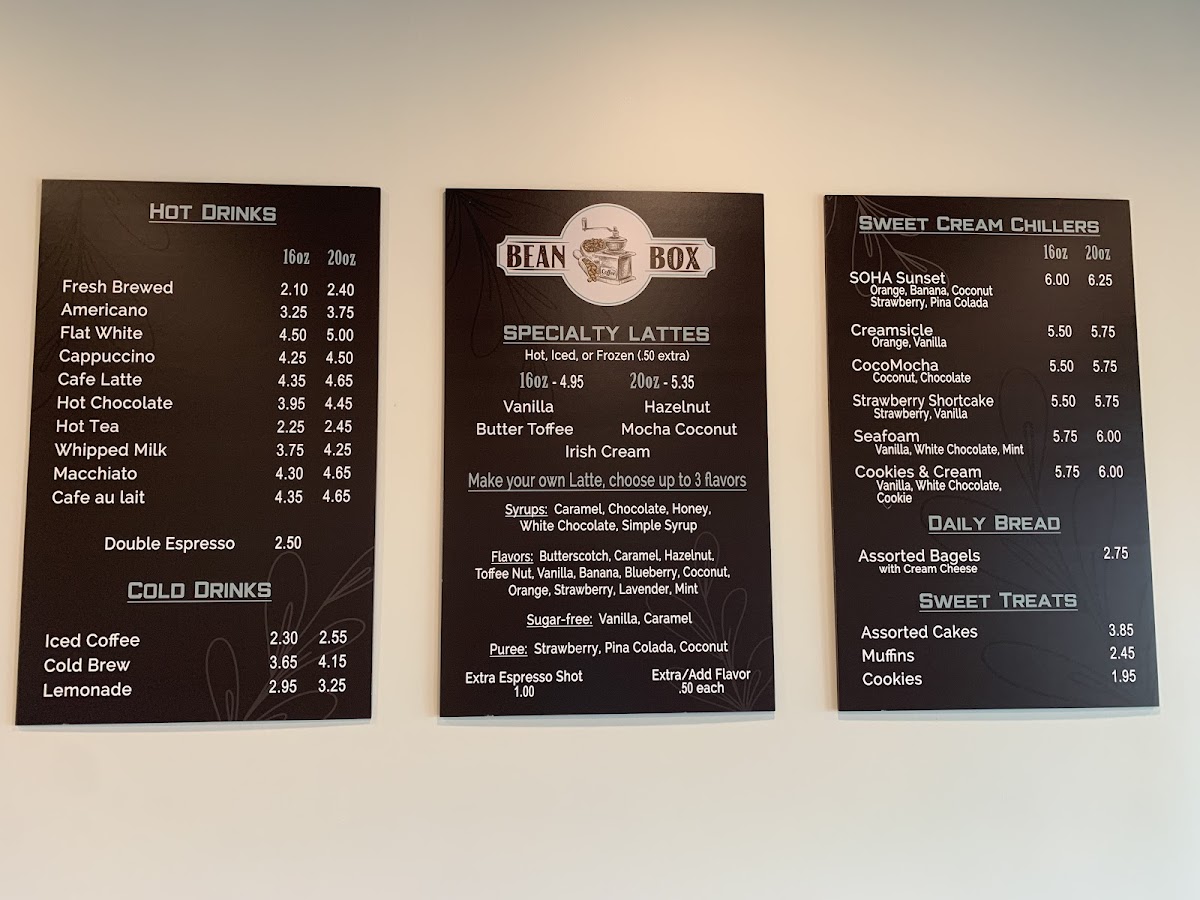 Welcome to Bean Box, a charming coffee shop nestled in South Haven, MI, at 225 Broadway St. This delightful establishment offers an array of exquisite beverages and bites, appealing to all palates. The menu features a tempting selection of cold drinks, including their renowned Coconut Cream Cold Brew, which is consistently a best-seller. For those seeking something sweet, the Sweet Cream Chillers are a must-try, with options like Soha Sunset and Orange Creamsicle whisking you back to nostalgic flavors.